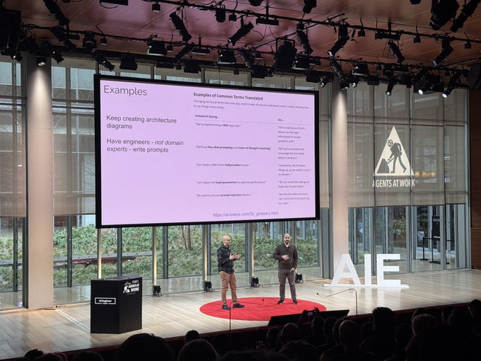 My favorite slide from @HamelHusain’s talk at @aiDotEngineer Summit NYC today. We need less technical jargon and more clear, accessible explanations in simple language for AI system concepts.