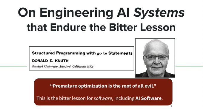 Was recently asked for my slides for the @aiDotEngineer World Fair from June, so I thought to share it here too. “On Engineering AI Systems that Endure the Bitter Lesson”