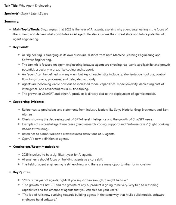 Full summary for each talk of the AI Engineer (@aiDotEngineer) Summit 2025 - Agent Engineering track. Great event once again @swyx.