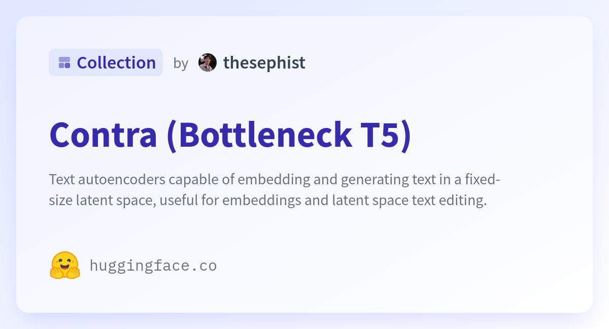 At @aiDotEngineer this evening, I shared that the text autoencoder model I've been prototyping with, which I call Contra, is on @huggingface!