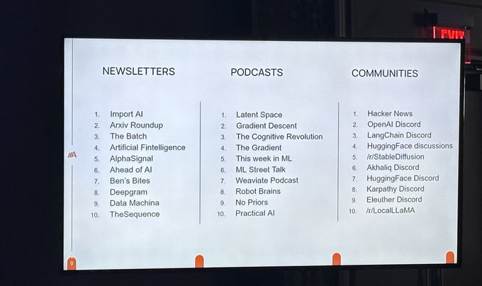 Top information sources for AI Engineers, at @aiDotEngineer Summit courtesy of @barrnanas & @AmplifyPartners.
